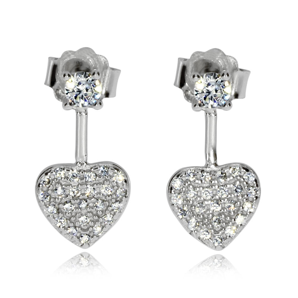Dámské náušničky se zapínáním na puzetu jsou vyrobené ze stříbra o ryzosti 925/1000 a jsou na povrchu pokyté rhodiem. Šperk je ozdoben drobnými kamínky kubické zirkonie. Maličká srdíčka jsou pevně připojená k dříku pro puzetový uzávěr.