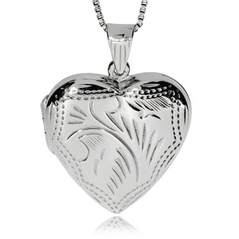 Drobný stříbrný přívěsek s povrchovým gravírováním má tvar srdce. Medailonek lze otevírat a dovnitř vložit fotografii někoho blízkého. Potom ale pozor - přívěsek se musí snímat při mytí!