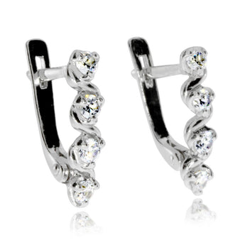 Stříbrné náušnice - Čtyři zirkony ( cubic zirconia) pod sebou
