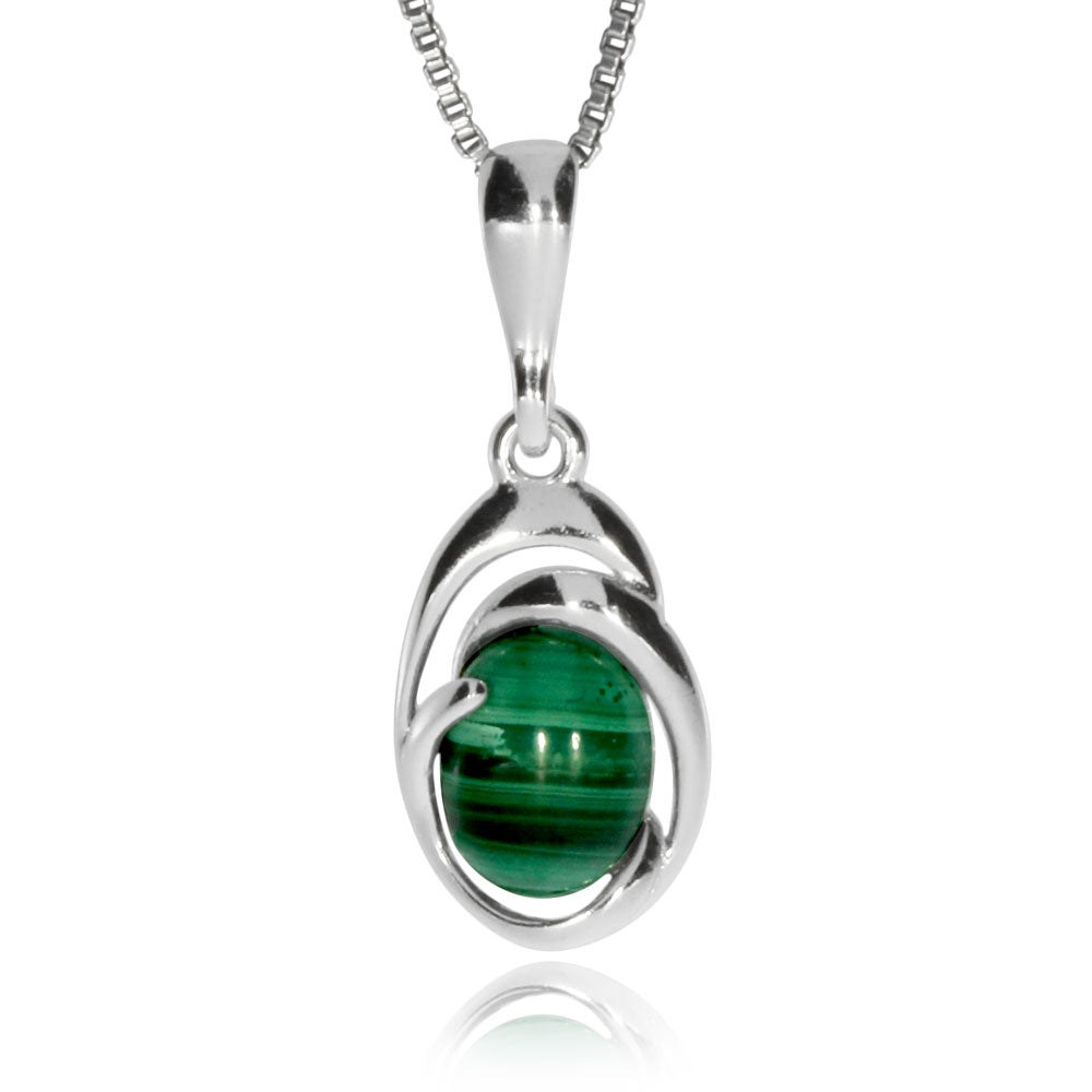 Stříbrný přívěsek - Drobný ovál s malachitem