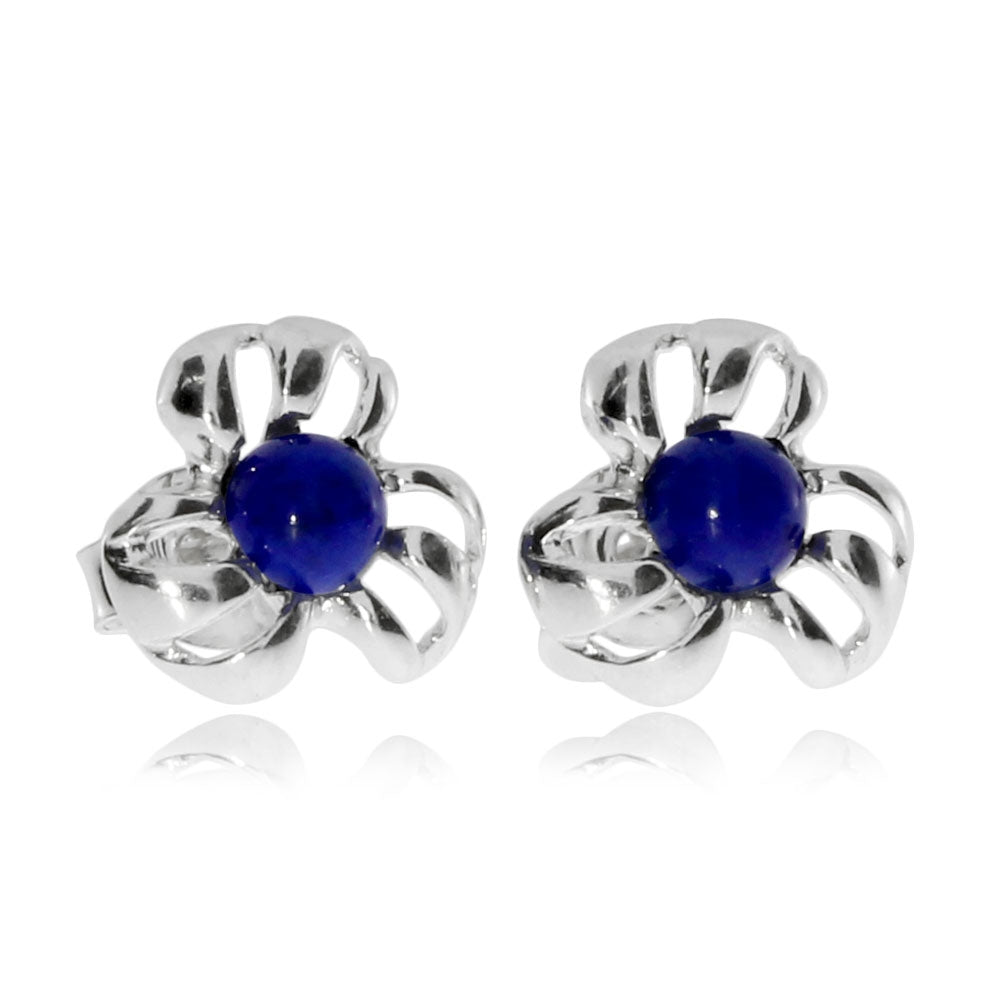 Stříbrné náušnice - Kytičky s modrým středem (lapis lazuli