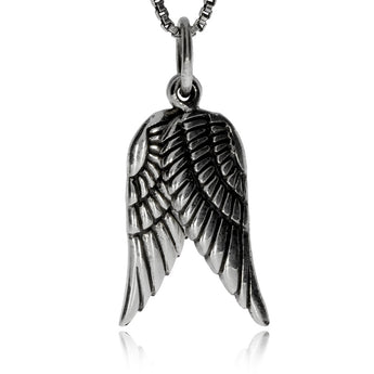 Netradiční a velice pěkně zpracovaný přívěsek je vyrobený ze stříbra se starostříbrnou úpravou, díky které skvěle vynikají jednotlivé detaily. Šperk znázorňuje dvě za sebou pověšená andělská křídla, vzniká tak zajímavý a důmyslný motiv. Spolu s tímto přívěskem najdete v naší nabídce také náušnice se stejným designem, společně vytvářejí šperkovou soupravu.