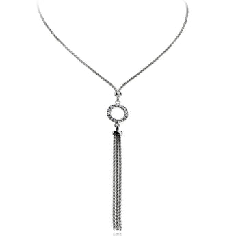 Úchvatný náhrdelník, který rozhodně nenechá v klidu žádnou ženu a dívku se zájmem v moderních, elegantních a jemně zdobných špercích. Jednoduchý náhrdelník nese kruhovou ozdobu, která je celá posetá třpytivými syntetickými zirkony (cubic zirconia). Vyrobený je z rhodiovaného stříbra, které je oblíbené pro svou odolnost a také nápadný lesk.