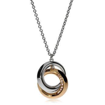 Moderně zpracovaný dámský náhrdelník Morellato tvoří řetízek a dvě spojené kruhové ozdoby. Šperk v sobě kombinuje dvě různé barvy lesklé a pěkně hladké plochy oceli. Vzniká tak zajímavý zdobný prvek, který je doplněný originálním designem a třpytivou linií, kterou tvoří osázení čirými křišťály. Spolu s náhrdelníkem najdete v naší nabídce i další šperky se stejným designem.