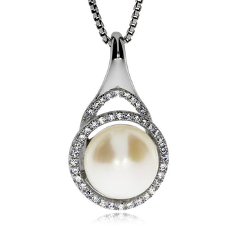 Stříbrný přívěsek se zirkony (kubická zirkonie) a perlou v kruhu