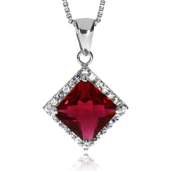 Stříbrný přívěsek se zirkony (kubická zirkonie) červený čtvereček