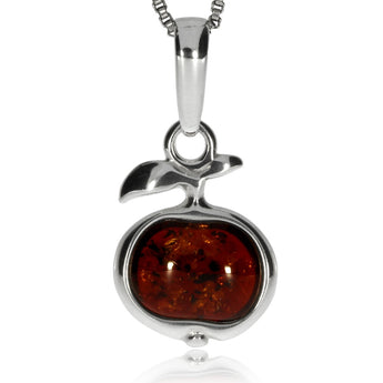 Stříbrný přívěsek s hnědým jantarem, motiv jablíčka