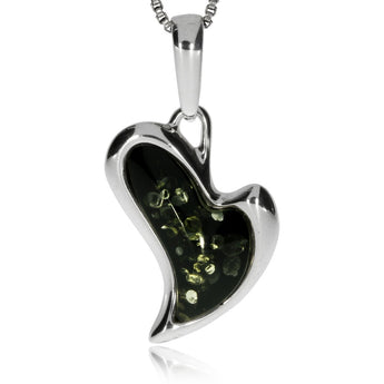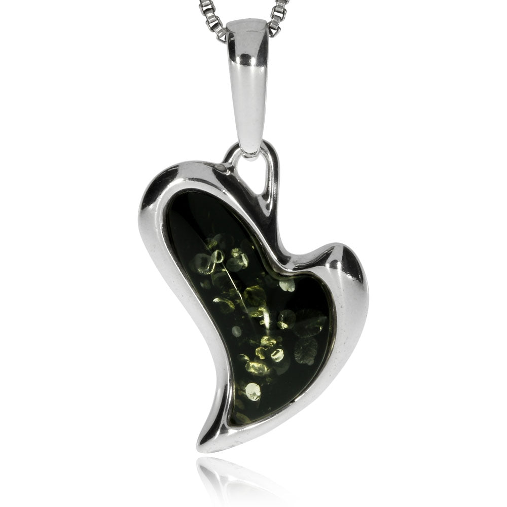 Stříbrný přívěsek s nazelenalým jantarem, srdce