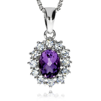 Stříbrný přívěsek s ametystem a zirkony (kubická zirkonie) fialový ovál