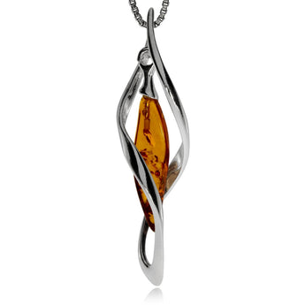 Neobyčejný a velice nápaditě zpracovaný dámský přívěsek, který zaujme svým netradičním designem. Přívěsek je vyrobený ze zářivého a lesklého rhodiovaného stříbra, které vytváří dvojitou spirálu. V té visí kousek zlatavého jantaru.