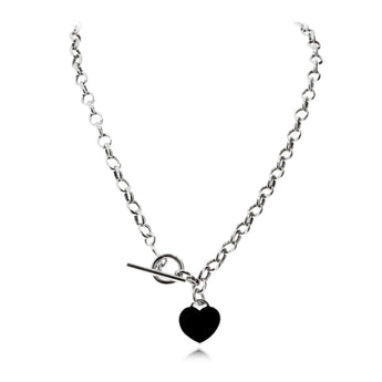 Půvabný dámský náhrdelník, který v sobě snoubí moderní a jednoduché zpracování a originální půvab. Náhrdelník tvoří řetízek složený z výrazných oválných dílů a doplňuje ho visací ozdoba ve tvaru srdce. Celek tohoto krásného šperku doplňuje netradiční zapínání. Náhrdelník je vyrobený z lesklého rhodiovaného stříbra a spolu s ním najdete v naší nabídce také náramek, se kterým tvoří sadu.