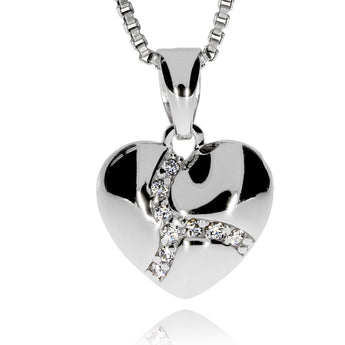 Stříbrný přívěsek se zirkony (kubická zirkonie) ve tvaru srdce s povrchovou úpravou rhodiované stříbro