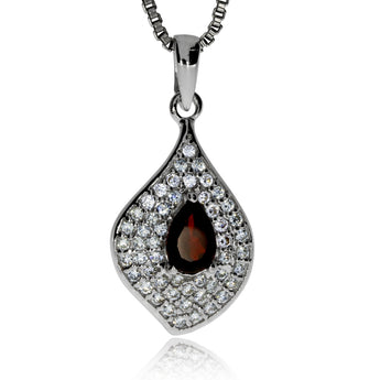 Stříbrný přívěsek s granátem (almandin) a zirkony (kubická zirkonie) - Lístek
