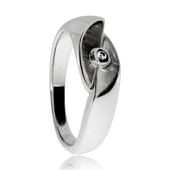 Jednoduchá elegance ve spojení s luxusním třpytem přírodního diamantu. Tento okouzlující dámský prsten bude skvělým doplňkem pro každou příležitost. Je vyrobený z odolného rhodiovaného stříbra a zajímavým ozdobným prvkem je kombinace lesklé a matné plochy.