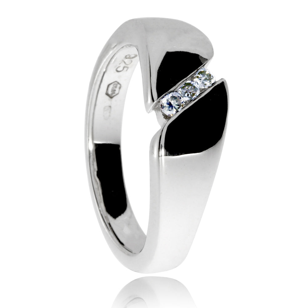Dámský stříbrný prsten s přírodními diamanty - Střed tvořený trojicí kamenů