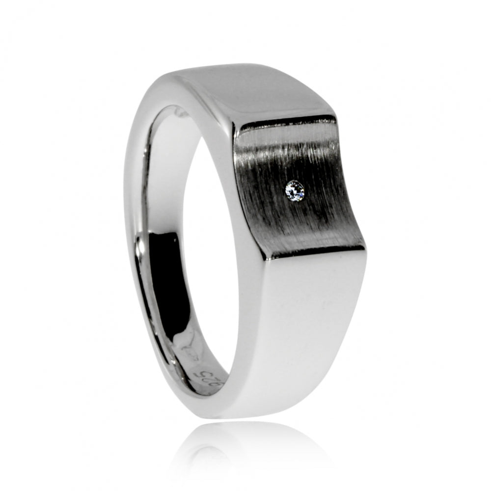 Netradiční a velice zajímavý dámský prsten, který v sobě spojuje moderní minimalistické zpracování a nekomplikovanou zdobnost. Přední plochu prstenu zpestřuje matná povrchová úprava, která působí velice atraktivně a dává dobře vyniknout záři přírodního diamantu. Prsten je vyrobený z rhodiovaného stříbra.