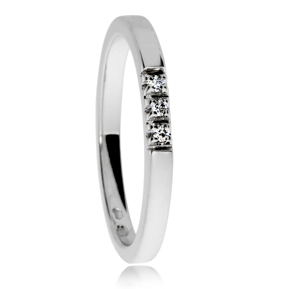 Působivě jednoduchý dámský prsten, který v sobě spojuje nadčasově elegantní design a nekomplikované zpracování. Je vyrobený z kvalitního stříbra, které je potažené vrstvou odolného, lesklého a vzácného rhodia. V jemném kroužku jsou zasazené tři přírodní zářivé diamanty, které prstenu dodávají luxusní třpyt.