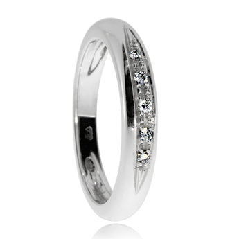 Jemný a velice krásně zpracovaný dámský prsten, který zaujme svou nadčasovou jednoduchostí a elegancí. Prsten je vyrobený z kvalitního a nádherně zářivého rhodiovaného stříbra a jeho linii zdobí osazení několika zářivými přírodními diamanty, které vytvářejí povrch plný třpytu.