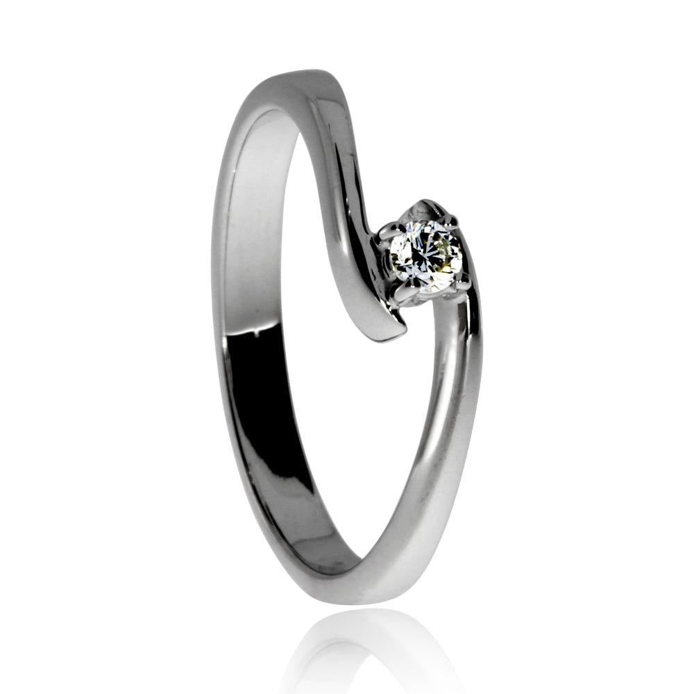Úchvatný dámský prsten s jedinečným půvabem a jemným designem, který zaujme ženy s láskou k luxusním šperkům. Prsten je vyrobený z velice dobře odolného a lesklého rhodiovaného stříbra a doplňuje ho záře čirého přírodního diamantu briliantového brusu.