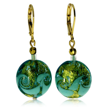 Bižuterní náušnice ze skla - Tyrkysovo-zelené kulaté vinuté perle