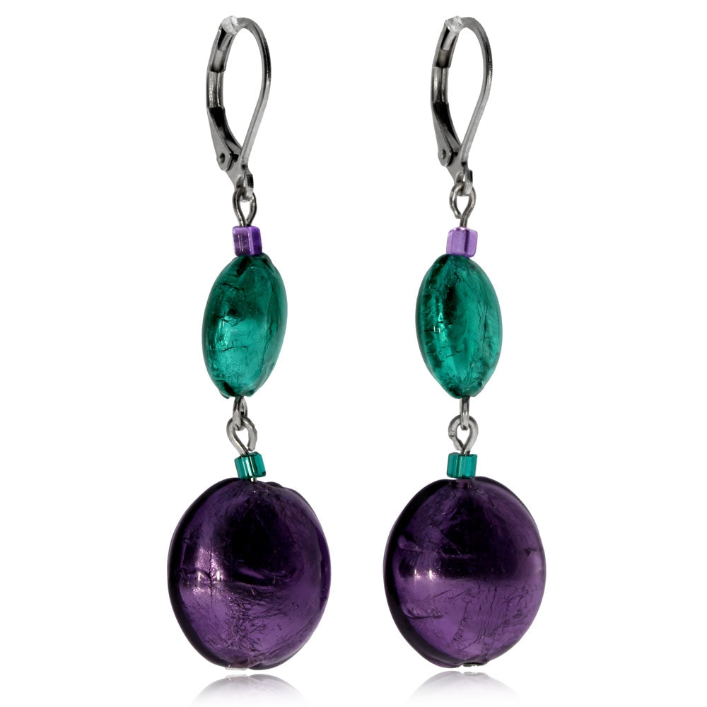 Bižuterní náušnice ze skla - Tyrkysové a fialové vinuté perle, kulaté