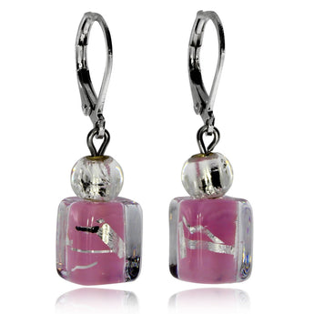 Bižuterní náušnice ze skla - Ledové kostky s růžovou barvou