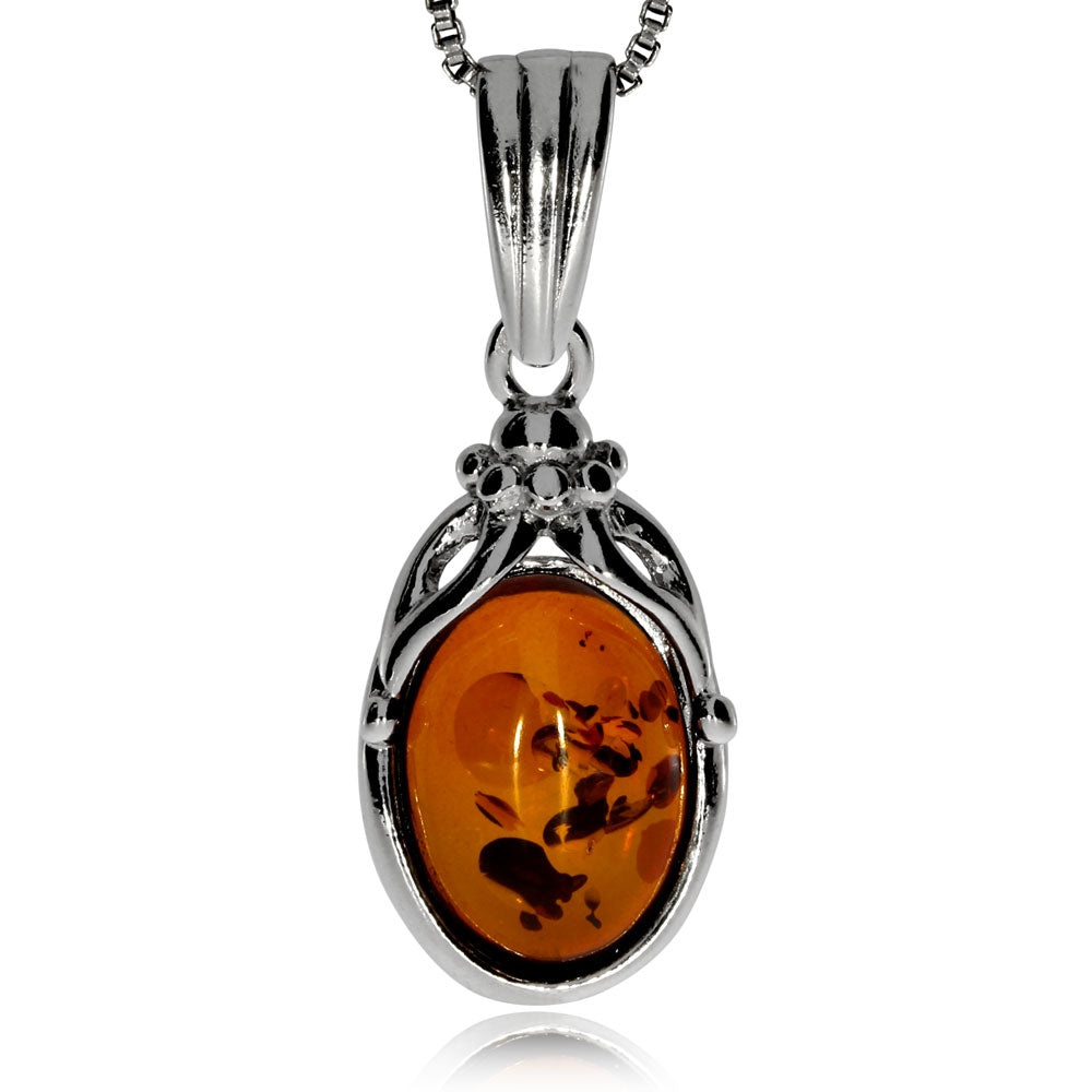 Stříbrný přívěsek s jantarem - Kámen ve tvaru oválu