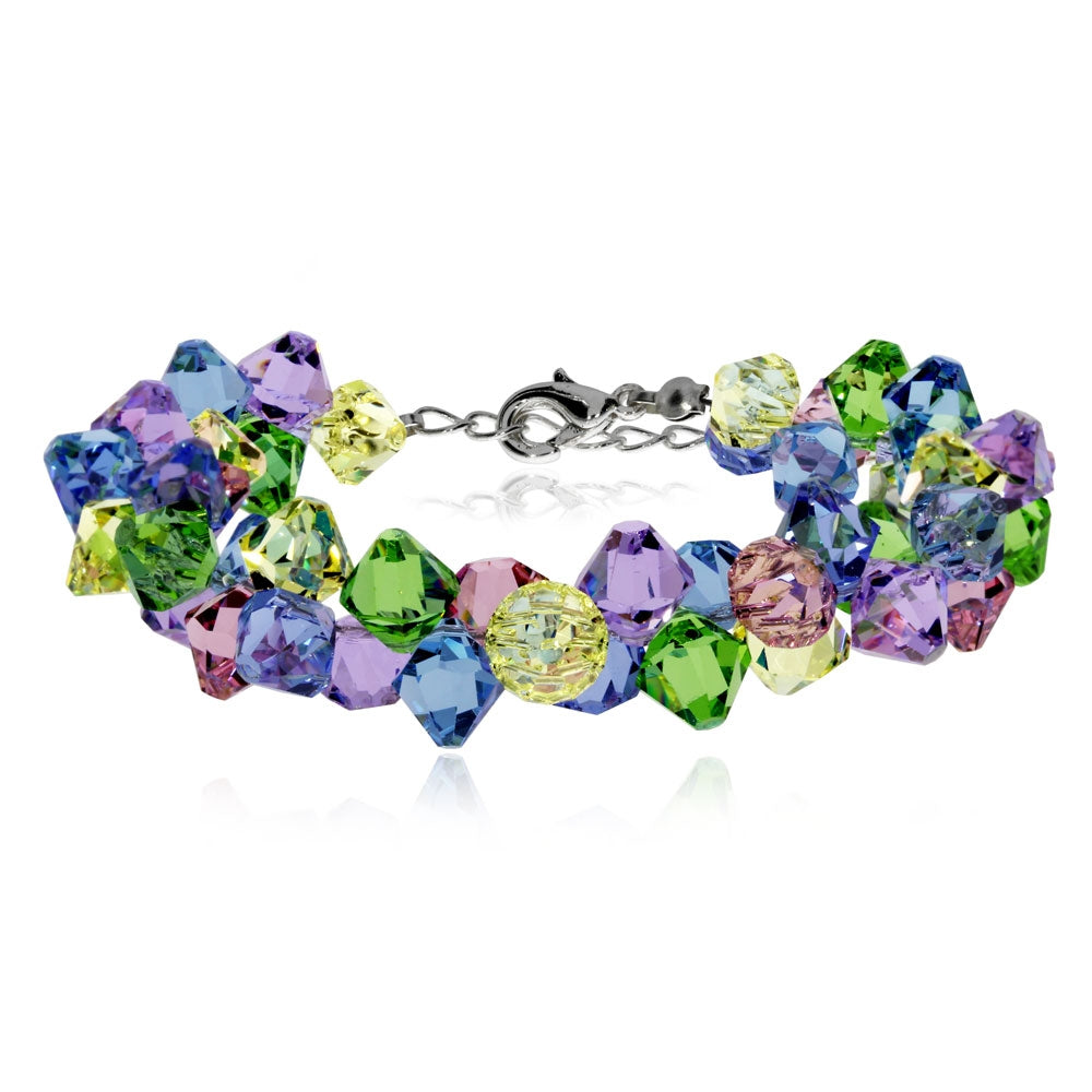 Náramek z křišťálu - Krystaly fialové a červené barvy