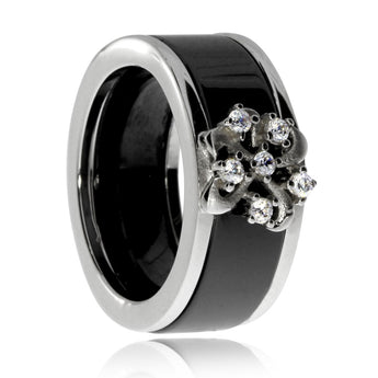 Okouzlující dámský prsten, který je skvělou volbou pro ženy a dívky s citem pro moderní design a nápadité šperky. Prsten pochází z kolekce šperků Preciosa a je vyrobený z lesklého a matného rhodiovaného stříbra. Jeho střední černá část je keramická, vzniká tak zajímavá souhra dvou různých materiálů. Vpředu zdobí prsten stříbrná květina, do které je vsazených několik čirých zářivých zirkonů (kubická zirkonie). Dodáváme včetně originální krabičky a certifikátu Preciosa.