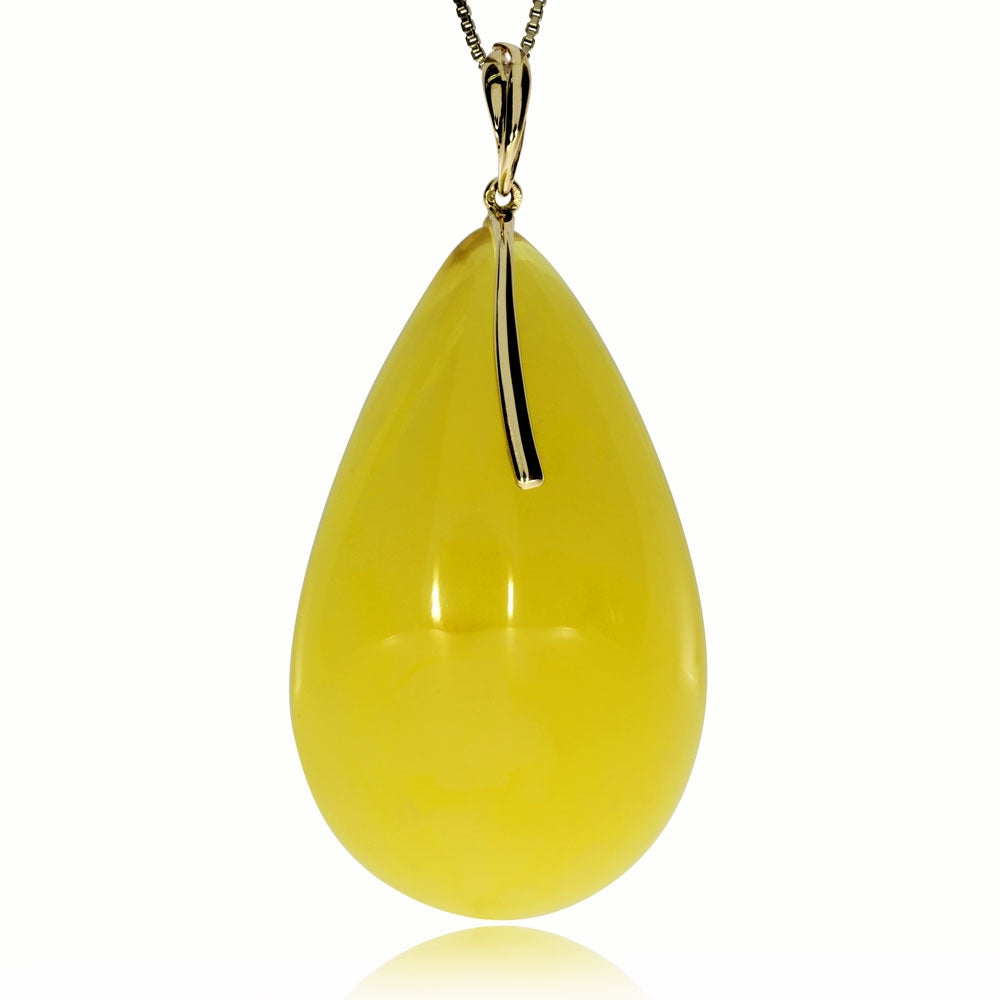 Jantartový přívěsek větší kapka- Mléčné žluté barvy