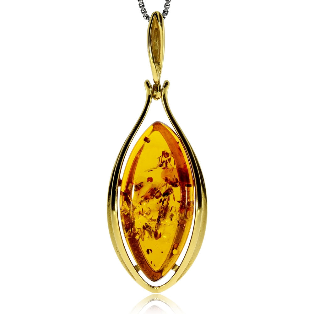 Jantarový přívěsek ve tvaru markýzy se zlatou povrchovou úpravou na stříbře