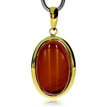 Jantarový přívěsek oválný se zlatou povrchovou úpravou na stříbře