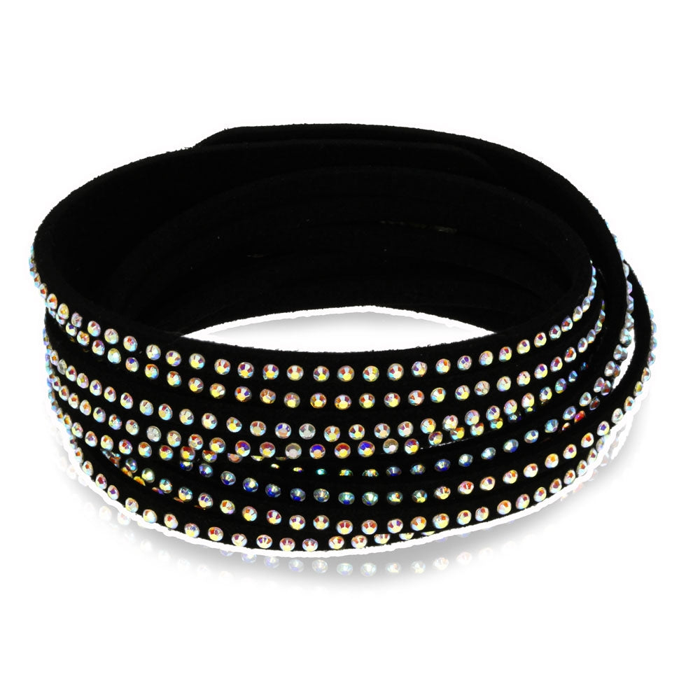 Textilní náramek černý se skleněnými křištály Stardust