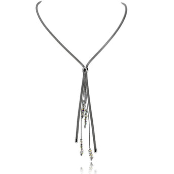 Originální a velice nápaditý dámský náhrdelník, který potěší každou ženu a dívku se zájmem v nadčasově elegantních špercích v moderním provedení. Jednoduchý design náhrdelníku tvoří kulatý řetízek calza utkaný ze stříbrných nití, které, spolu s několika lesklými řetízky s krystaly Swarovski, vytvářejí ozdobný vodopád. Náhrdelník je vyrobený z rhodiovaného stříbra a spolu s ním najdete v naší nabídce také náramek se stejným motivem.