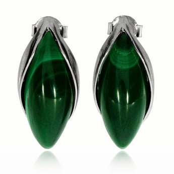 Stříbrné náušnice s malachitem ve tvaru markýzy
