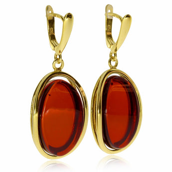 Stříbrné náušnice s jantarem zlacené na stříbře