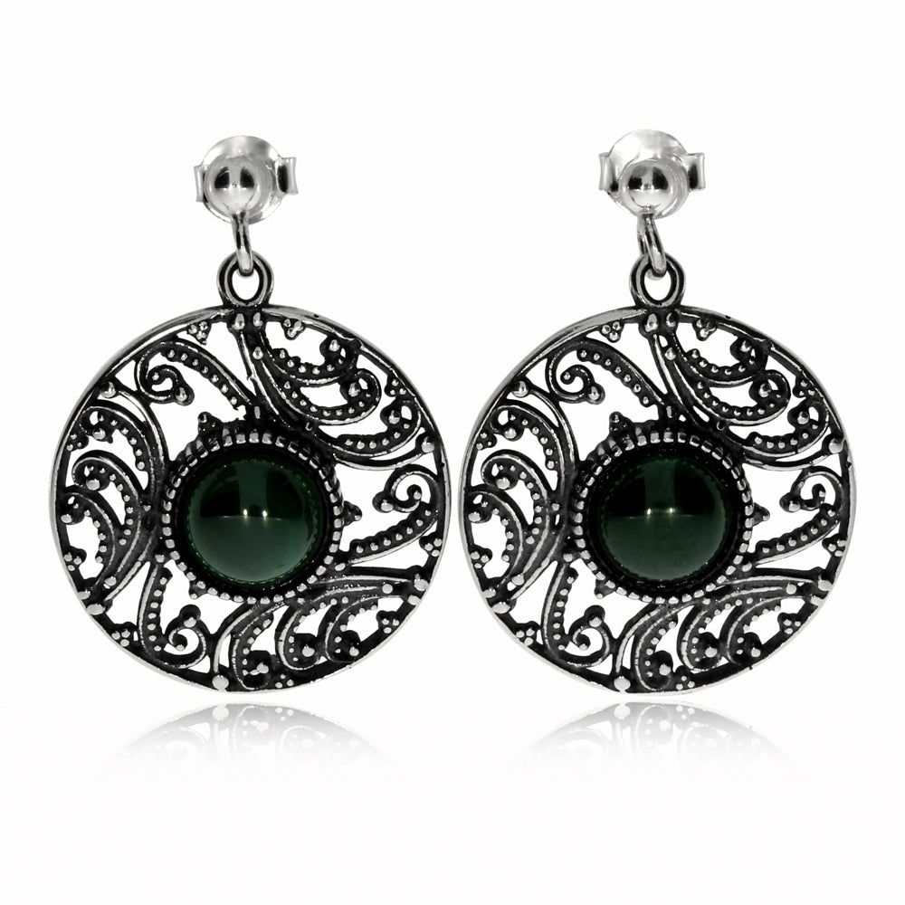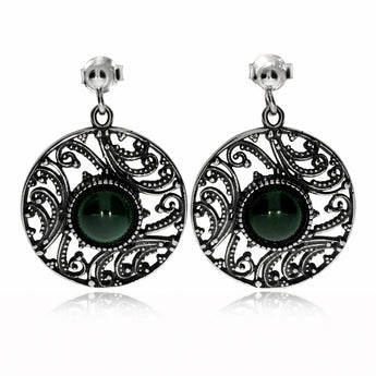 Stříbrné náušnice s malachitem - Kulatý tvar