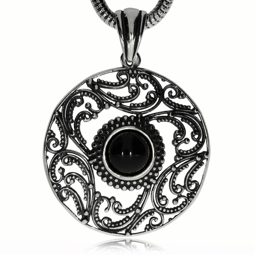 Stříbrný přívěsek s onyxem v ozdobném kole