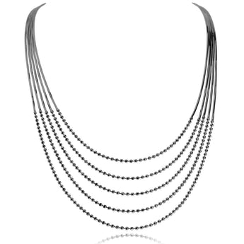 Okouzlující dámský náhrdelník je vyrobený ze zářivého a dobře odolného rhodiovaného stříbra a tvoří ho několik jemných řad, které zdobí kuličky s vybroušenými lesklými plochami.
