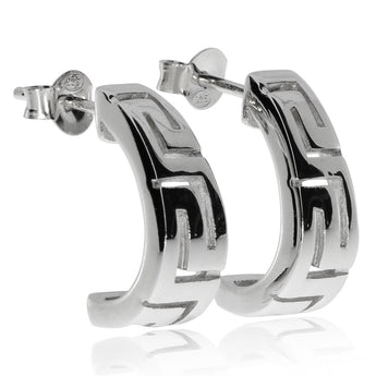 Jednoduše zpracované dámské náušnice působí elegantně a decentně. Na jemné linii je vyobrazený řecký motiv, který je oblíbený pro svou geometrickou zajímavost. Náušnice jsou vyrobené z dobře odolného rhodiovaného stříbra, které je známé svým nápadným leskem. Spolu s nimi najdete v naší nabídce také náhrdelník a náramek.