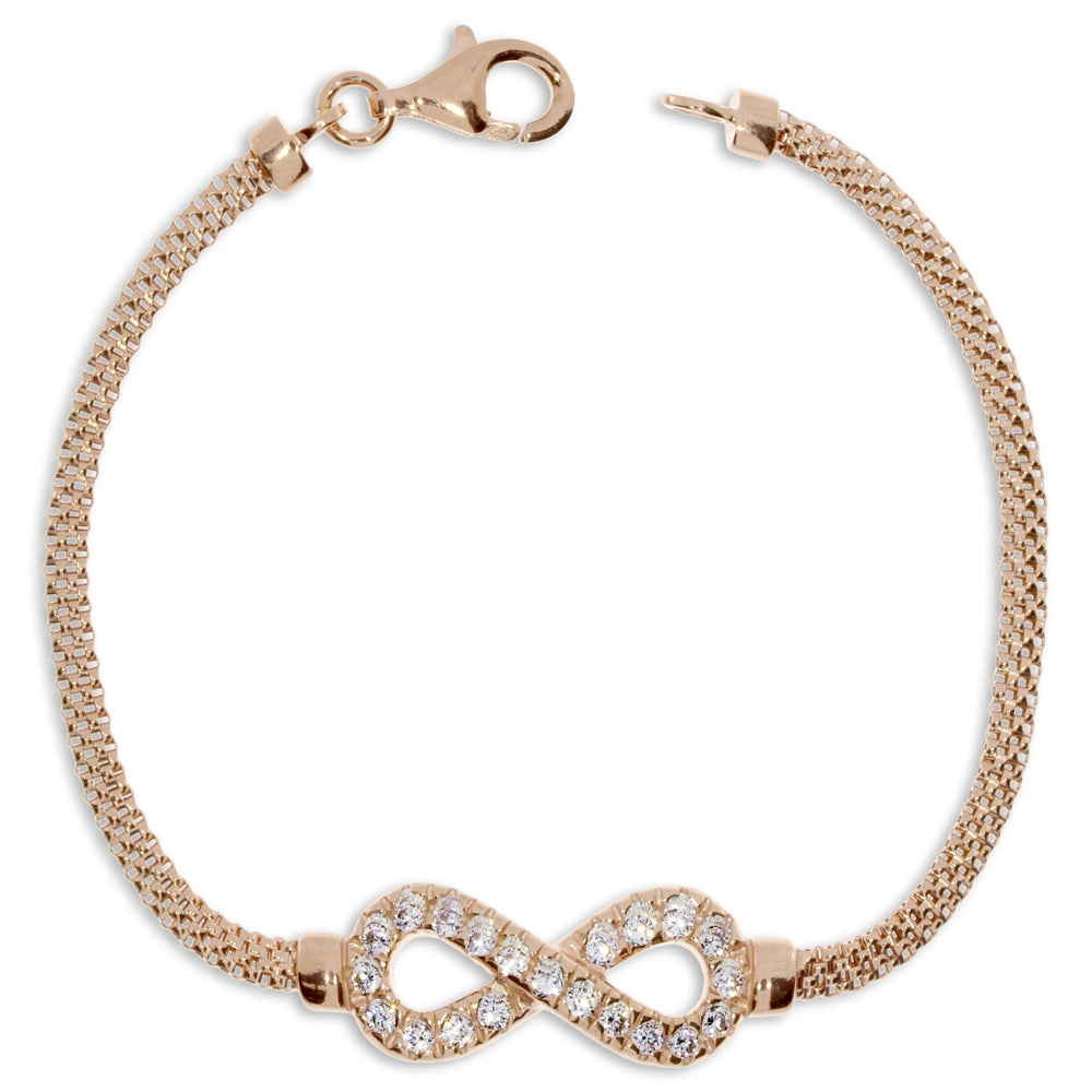 Stříbrný náramek s růžovým povrchem zdobený na středu znakem INFINITY