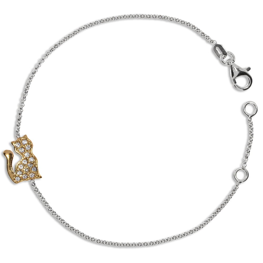 Stříbrný náramek zdobený kočičkou se zirkony (cubic zirconia\n
