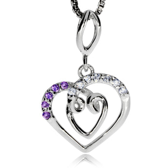 Stříbrný přívěsek - Srdíčko s čirými a fialovými zirkony (cubic zirconia