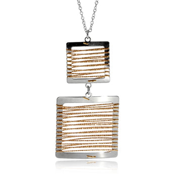 Stříbrný náhrdelník zdobený dvěmi čtverci - Růžově drátkovaný