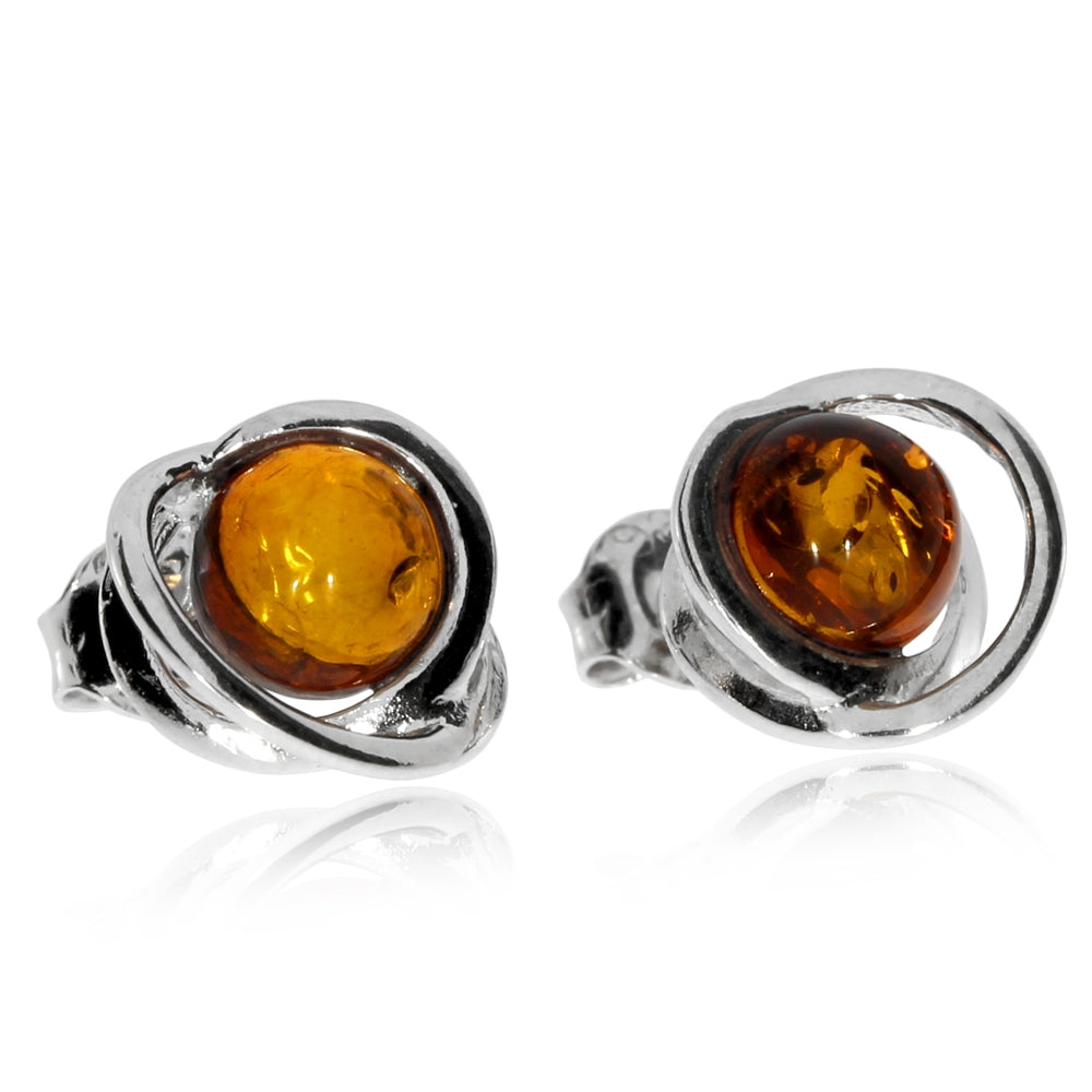 Stříbrné náušnice s kulatým jantarem na puzetu