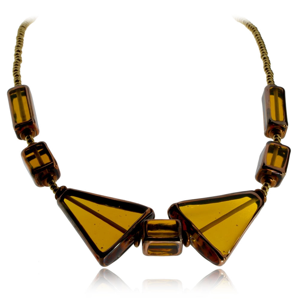 Bižuterní náhrdelník z ručně vinutého skla - Trojúhleníky v hnědé barvě