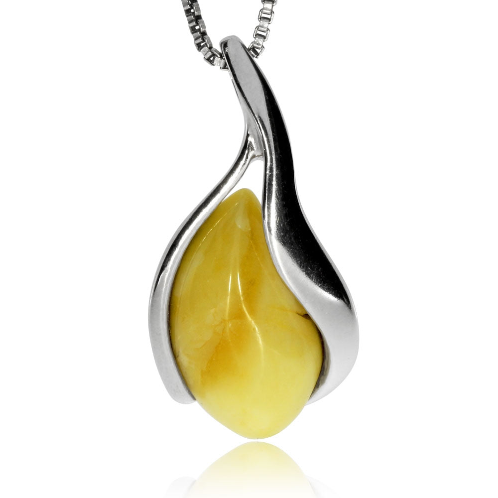 Stříbrný přívěsek se žlutým jantarem v nezvyklém uchycení