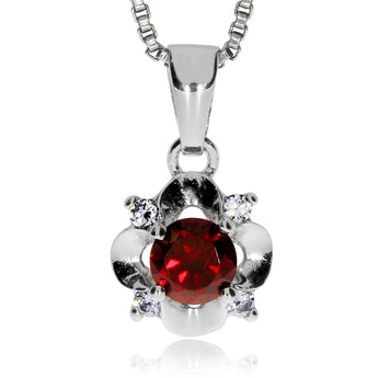 Stříbrný přívěsek se zirkony - Kytička s červeným středem (kubická zirkonie