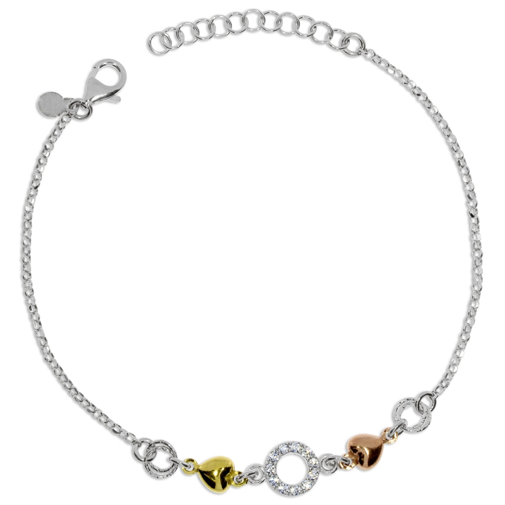 Stříbrný náramek se zlacenými srdíčky a kroužkem